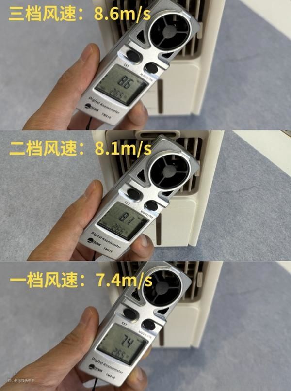 可以看到在三档时的风速能够达到8.6m/s,十分接近官网给出的9m/s,0.4m/s的误差应该是受到测试环境的影响下而产生的,实际上咱们基本体会不出来这个误差,所以基本可以忽略不计。
