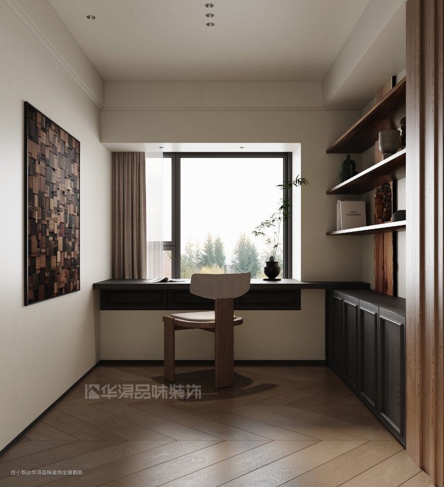 将原有的飘窗打掉,根据空间结构巧妙设计书桌,下方做嵌入式抽屉,打造一个光线充足、明亮舒适的工作和学习空间。感到疲累时,只要抬起头就能看到窗外美景,给眼睛做个按摩,给精神做个 spa。