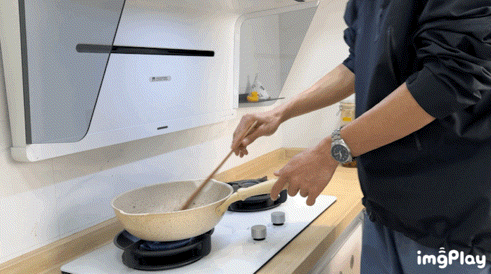 米家S2的手势控制几乎可以让你全程都不触碰到机器面板,右挥即可开机。炒不同的菜则可以通过继续右挥来调整风力档位。