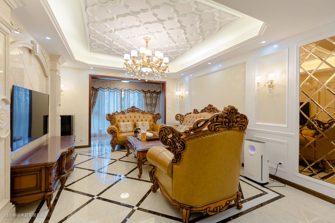 加上欧式风情十足的家具,复古宫廷风的皮质沙发,瞬间将整个家的奢华感拉伸,而且还柔软舒适,兼顾到居住体验。