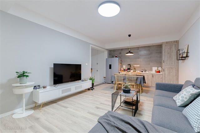 这个家的公区满级就比较小,加上采光也有限,所以墙面就选择了浅灰色的乳胶漆通刷,淡淡的灰色并不会显得压抑,也不会觉得空间单调。