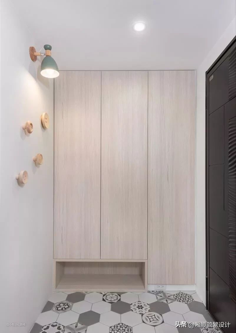 - 玄关鞋柜下方悬空处:安装照明灯,方便换鞋子时提供充足的光线。