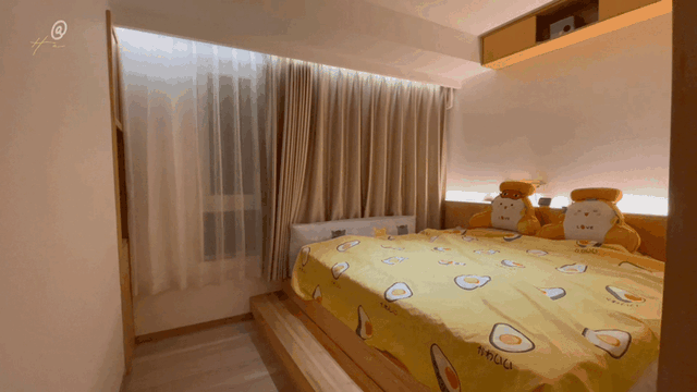 卧室的窗帘同时慢慢地自动打开,房间一点点变亮,