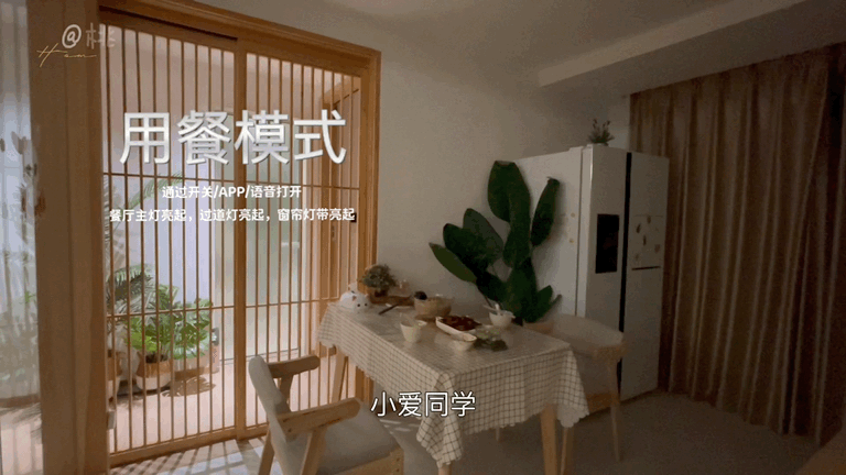 餐厅灯亮起,吃完以后说一声“吃饱了”,自动关闭用餐模式。