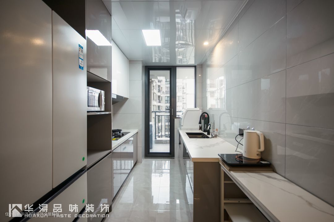 厨房采用平行布局,让橱柜平行分布,可以更好地利用狭长的空间,提供更充足的操作空间和收纳空间。