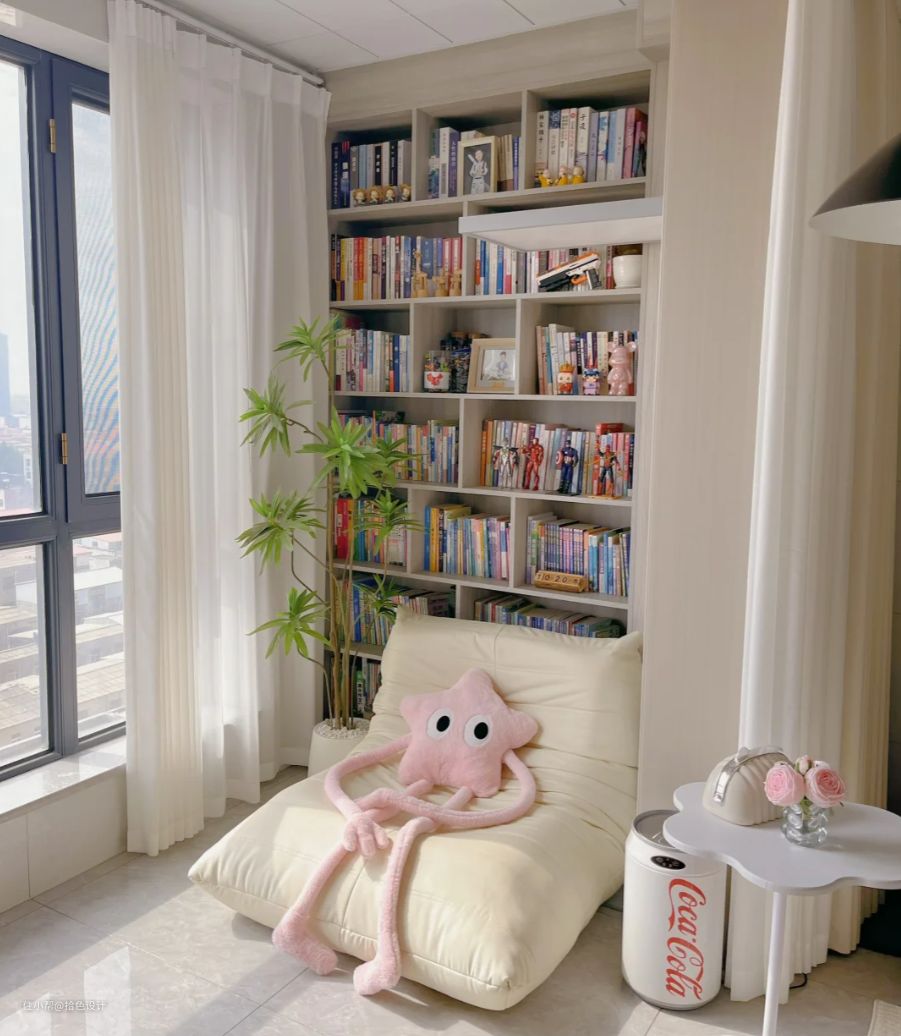再比如网友@吴小尔,就将次卧打造成了一间影音室,一个人,一杯酒,一场电影,一个奇妙的夜晚,要多放松就有多放松。