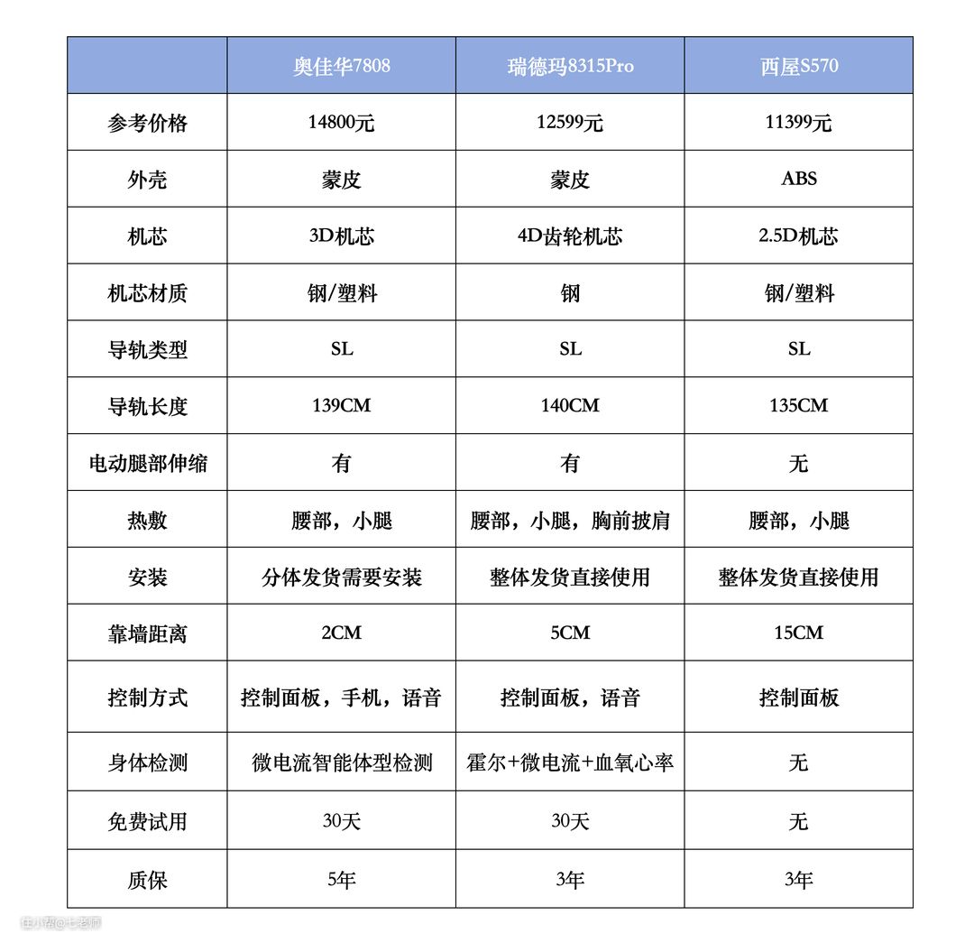身体感受是非常主观的事情,我的身高为180cm,体重87公斤,坐宽对比奥佳华7808>瑞德玛8315Pro≈西屋S570。