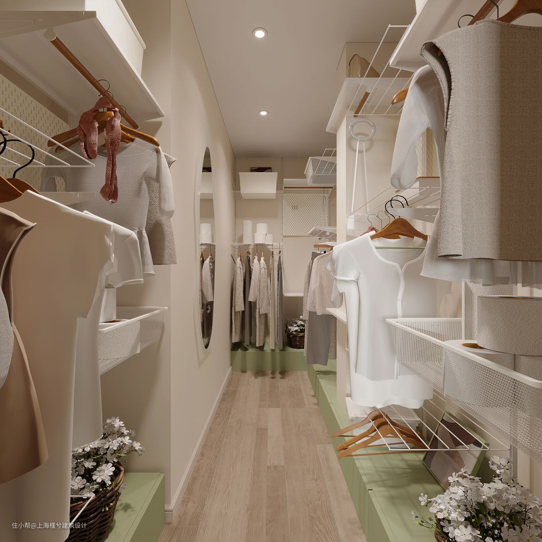 用到了金属衣架的形式,让衣物有更多的可能被收纳~