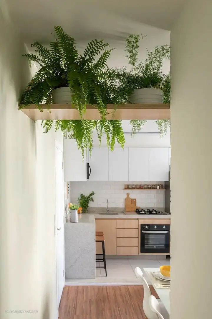像厨房角落、卫生间角落,这些区域与其浪费,不如放上几盆赏心悦目的绿植进行点缀。