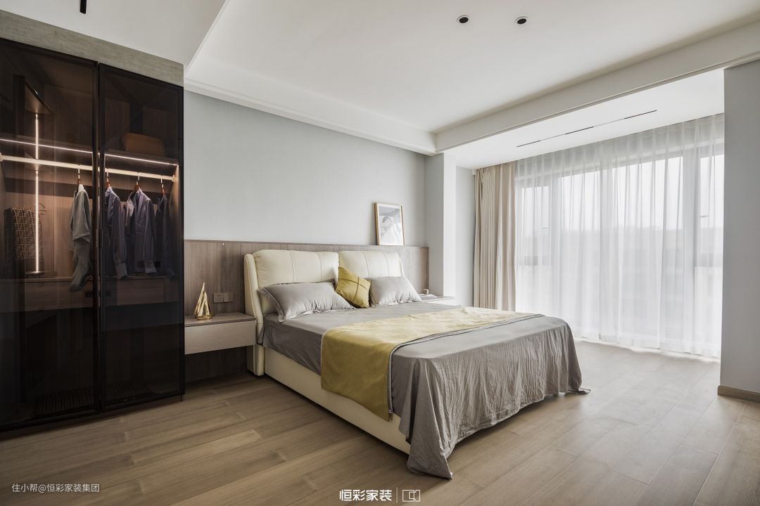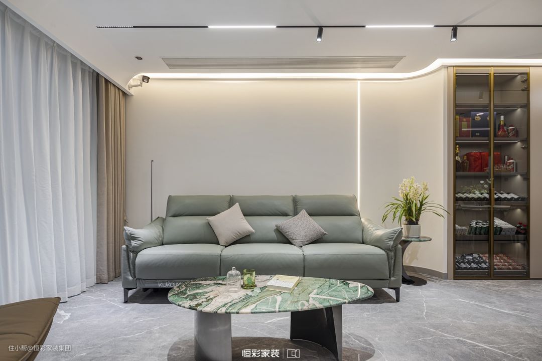 而且,经过悬浮处理后,削弱了吊顶的笨重感,使顶部空间更有层次,加上灯带的烘托,氛围感拉满。