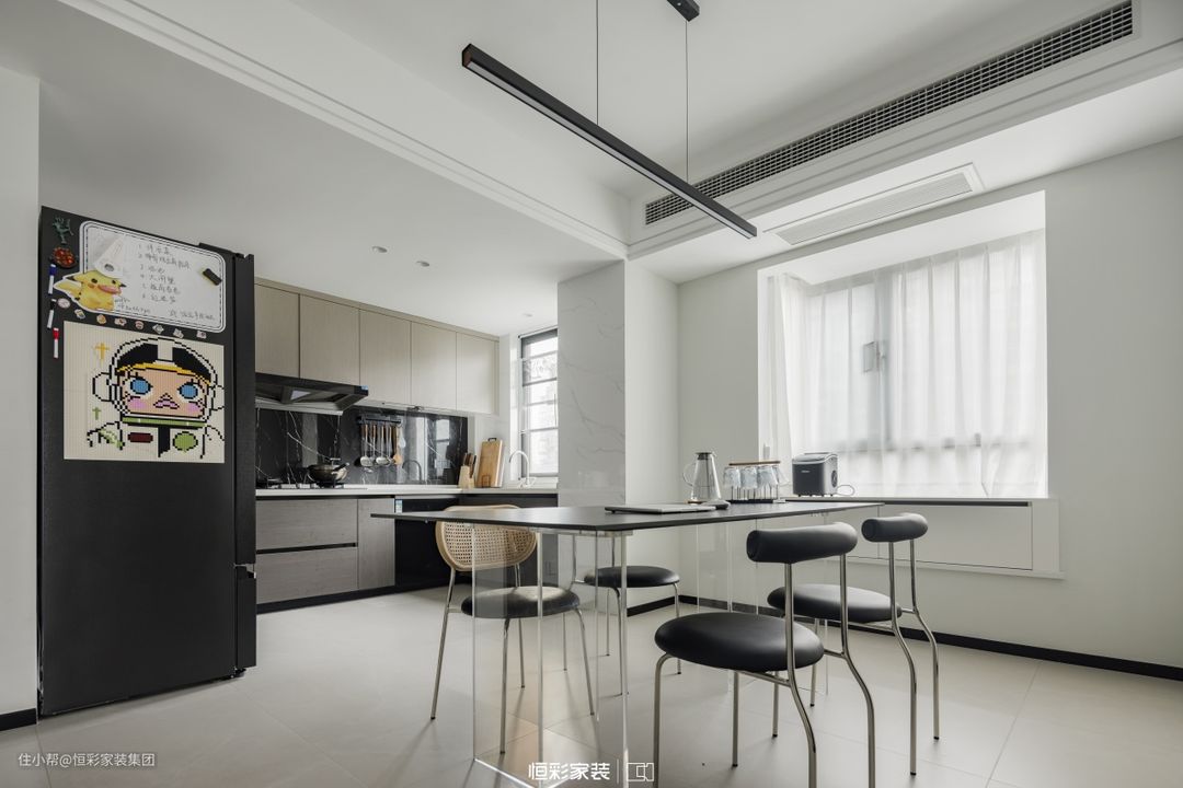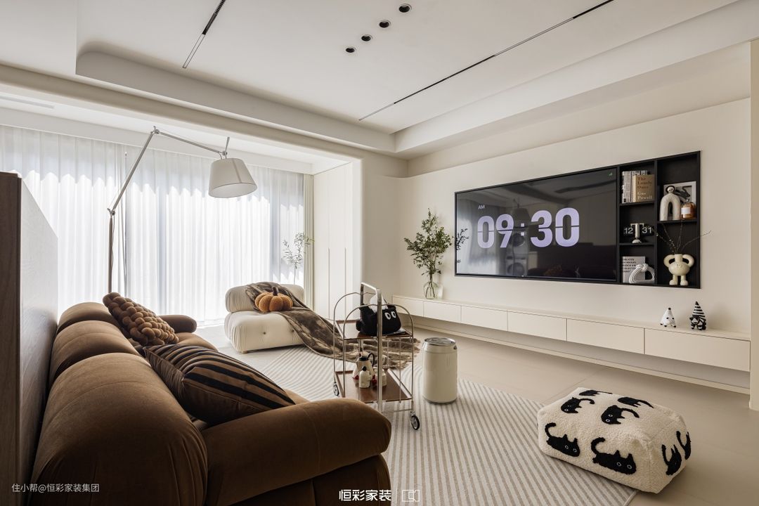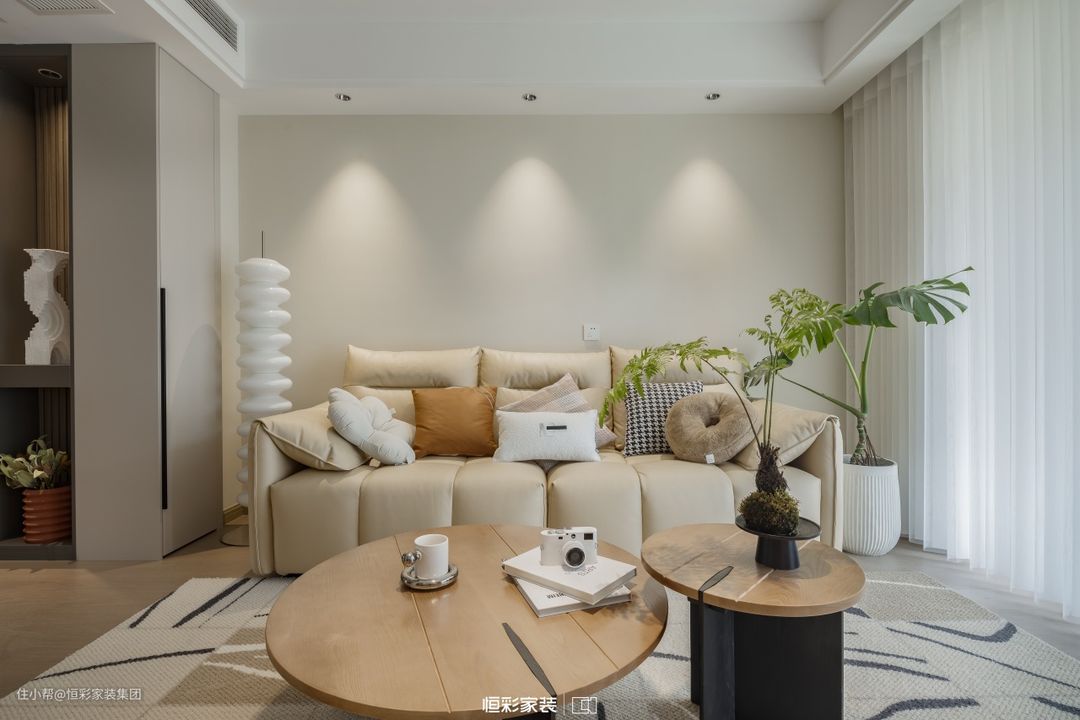 可以做灯光氛围布局,暗装筒灯、线型灯、磁吸轨道灯这些流行灯饰,就有了可安装的位置。