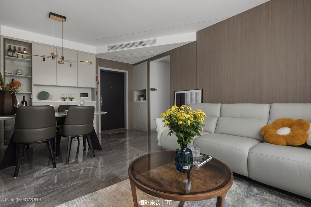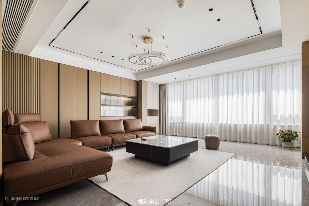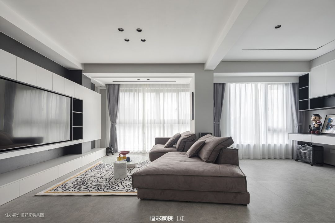 而且,回形吊顶的施工也相对简单,能有效遮挡新风管道、空调管道、横梁,也可以把灯带和筒灯隐藏起来,最大程度保证空间的完整与氛围感。