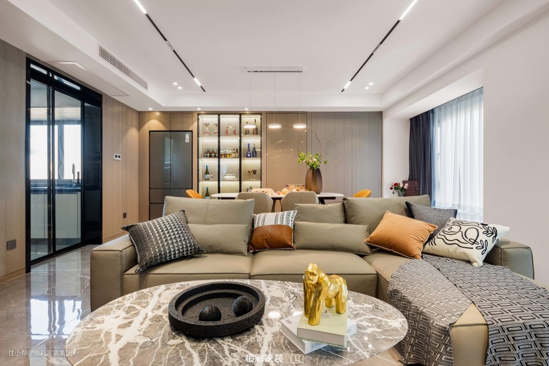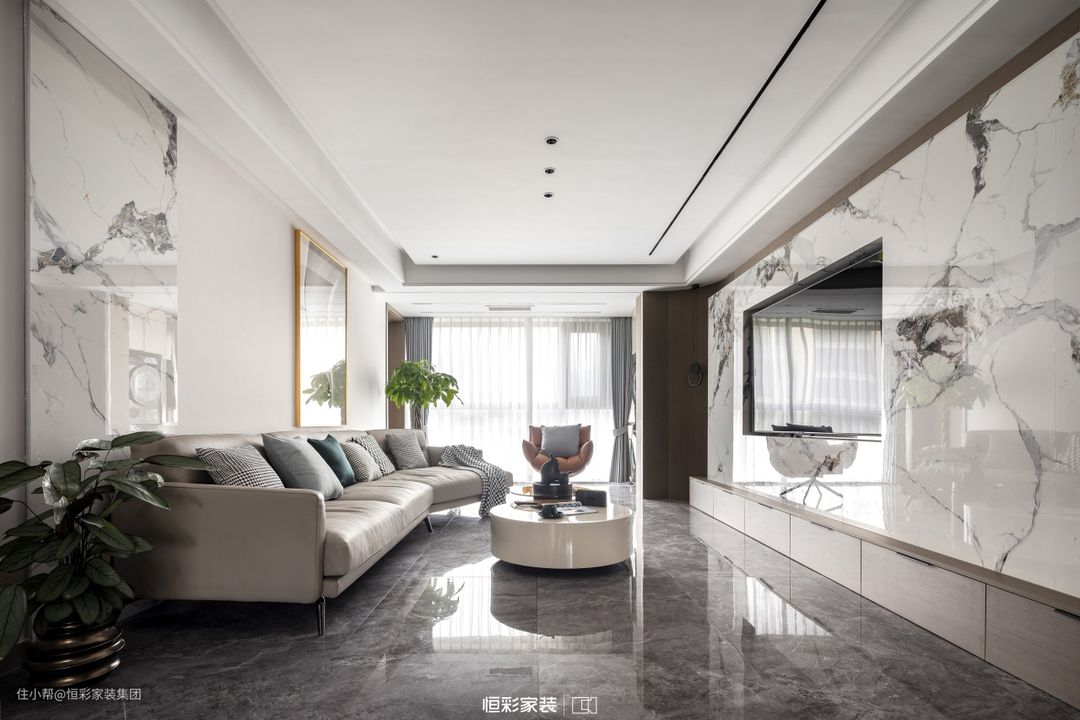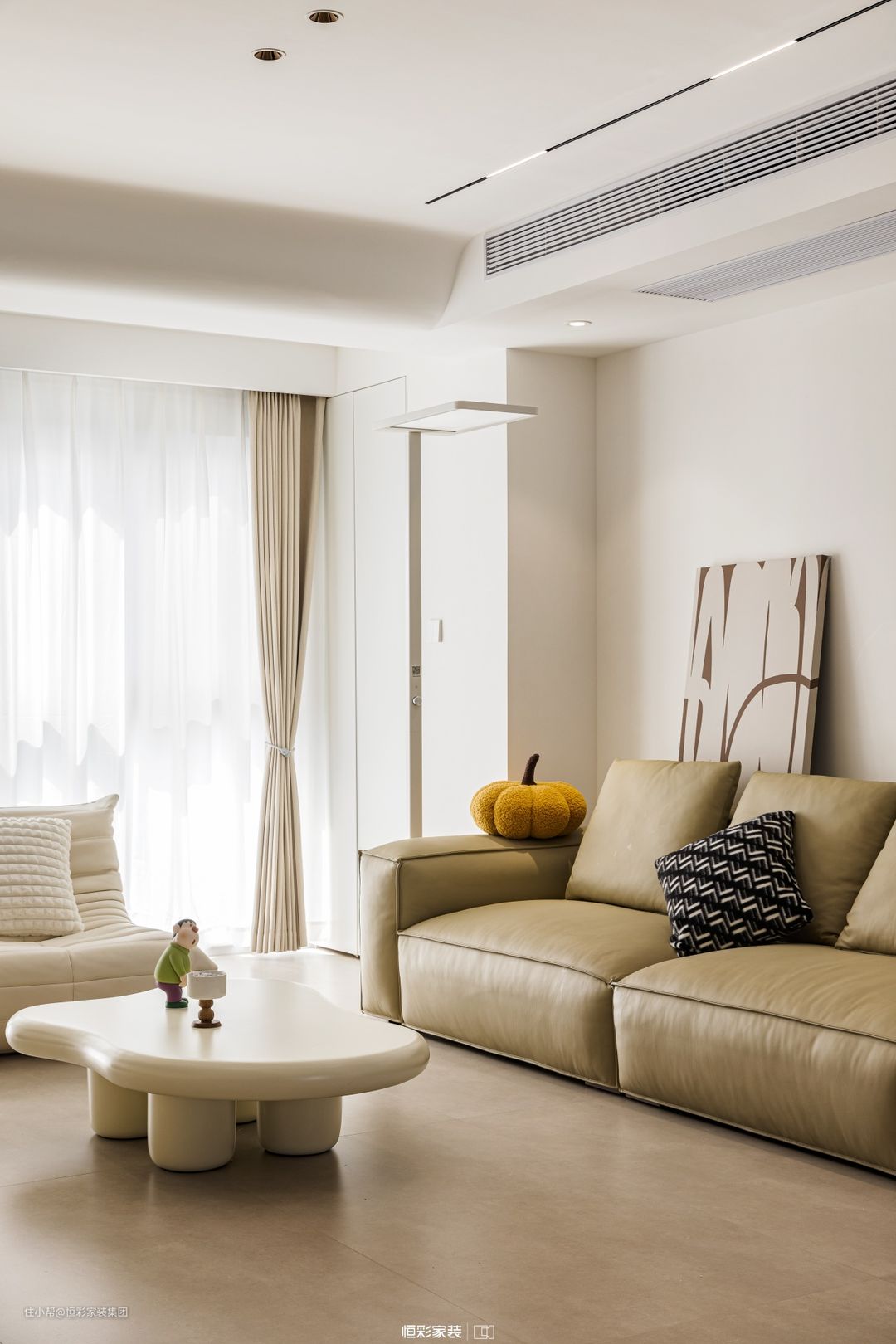 在顶面做满吊顶可以让空间看起来更平整,提高空间的高级感,而且无主灯需要的筒灯、射灯也都能嵌入其中,可以把这些光源隐藏起来,让空间更统一。