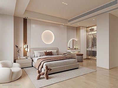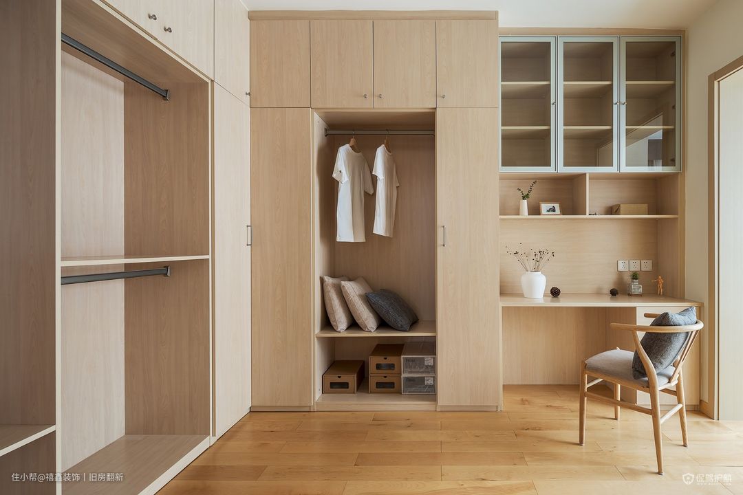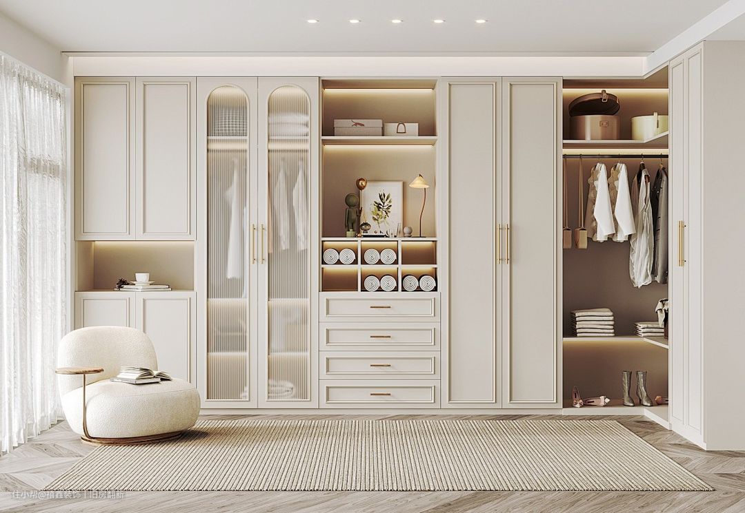 衣柜的材质也会影响整体风格。例如,实木衣柜给人一种自然、温馨的感觉,适合田园风或中式风格的卧室;
