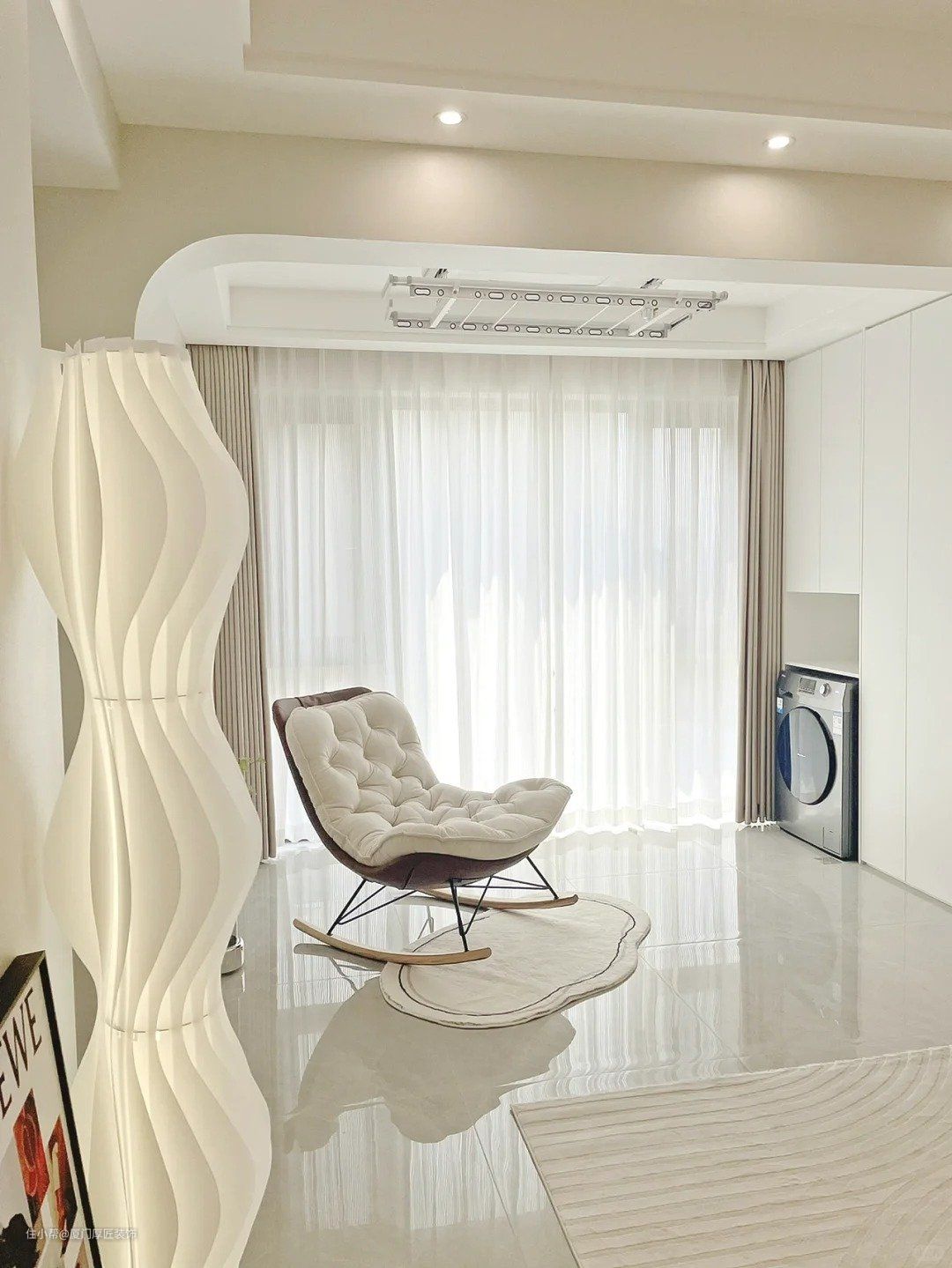 而且,现在很多家庭是单阳台,这个阳台承接了洗衣晾晒的功能,不是真正意义上的观景阳台。本来洗衣设备已经挤满了阳台,再挤进去吊椅,真的太占用空间,而且这么拥挤的空间,也没有什么品质可言,不如不要。