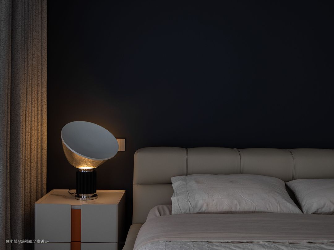 一深一浅,宇宙万物都有自己的对立面:虚实,明暗,动静。主卧拆除原有的墙体,改为落地窗,在去掉空间中的封闭感之后,呈现出自由、交互、融合的生活状态。黑色的神秘与橙色的跳动,交织在一起,平和松弛的空间情绪由内而外散发于此。