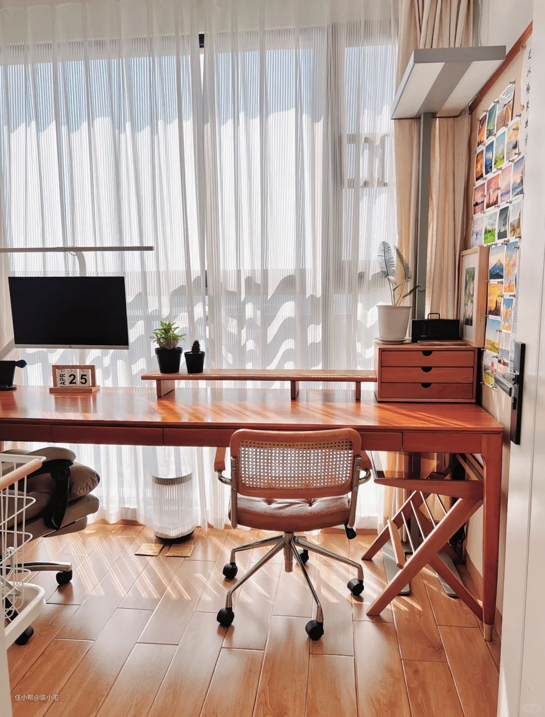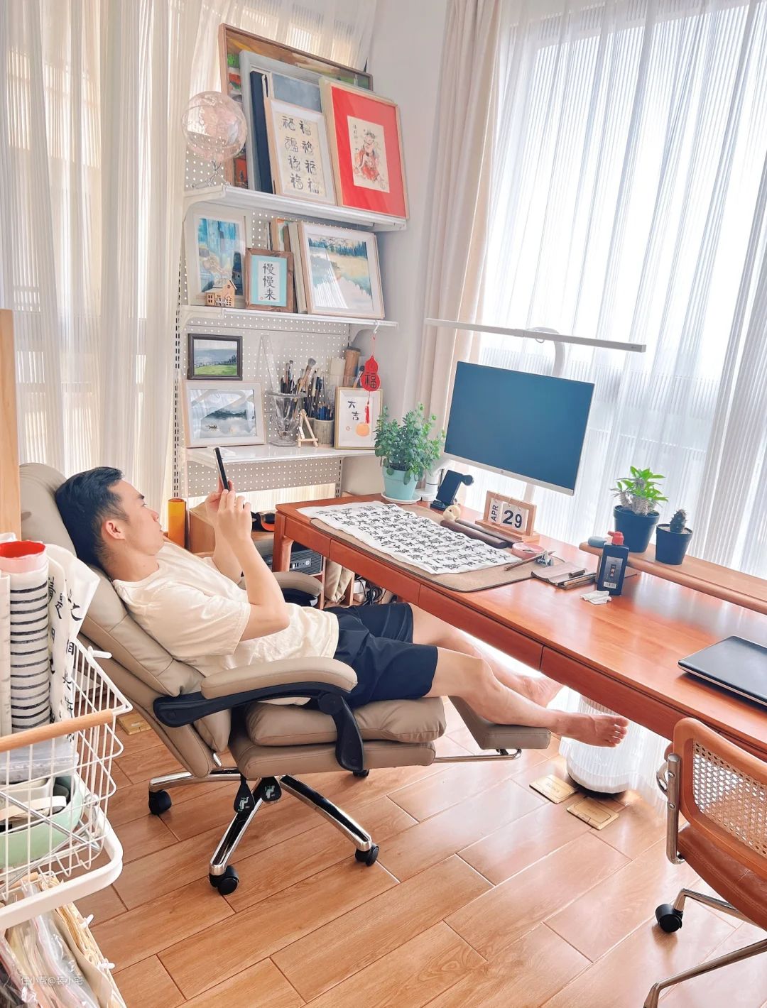 我妈是个行动派,说干就干。她买了书桌、椅子、书柜和一些小装饰品,还请人来重新布置了线路,安装了灯具。经过一番折腾,原本的阳台摇身一变,成了一个有模有样的小书房。