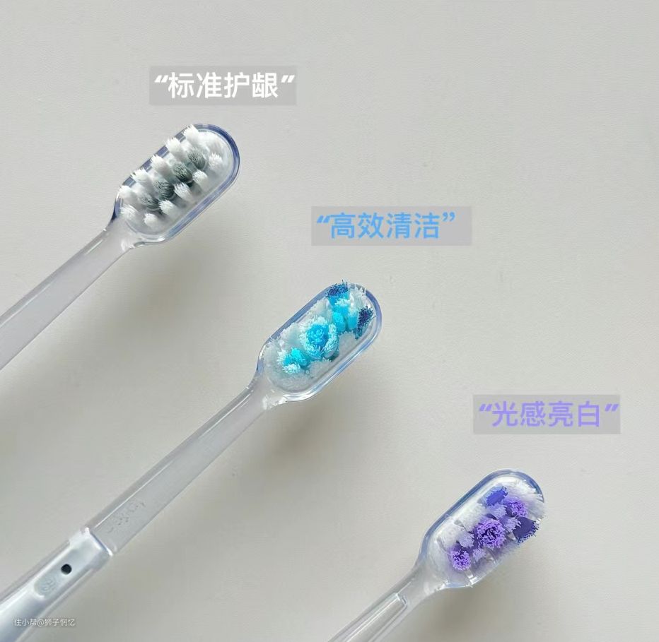 所以要优选尖细柔软的刷毛,能够深入清洁牙缝牙龈沟深处死角,达到全面清洁的效果。同时,由于牙龈部分比较敏感柔软,刷毛不能太硬,否则容易刷出血,软刷毛才能具备更佳的护龈效果。