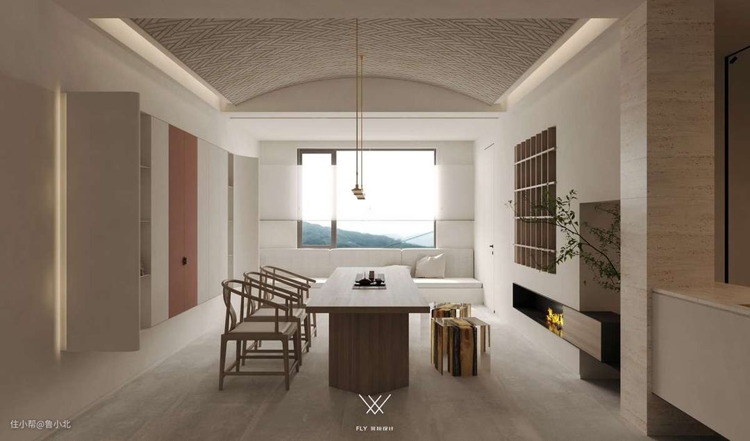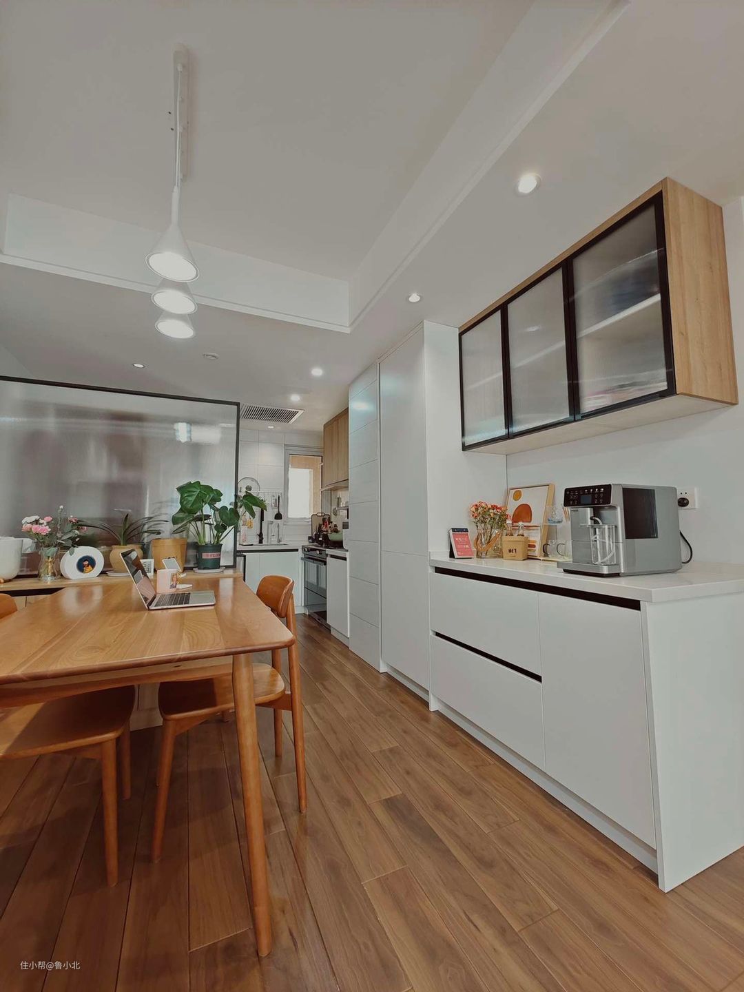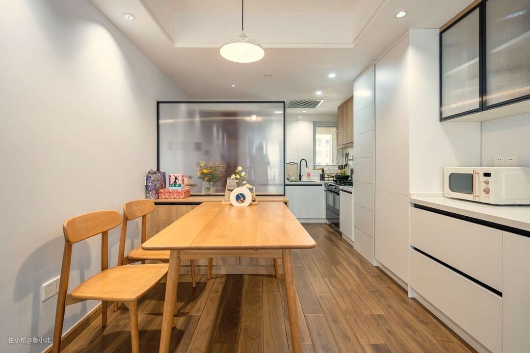 第四种:白色+胡桃木,胡桃木色很高级,装出来的效果简洁大气,适合现代和新中式风格装修;