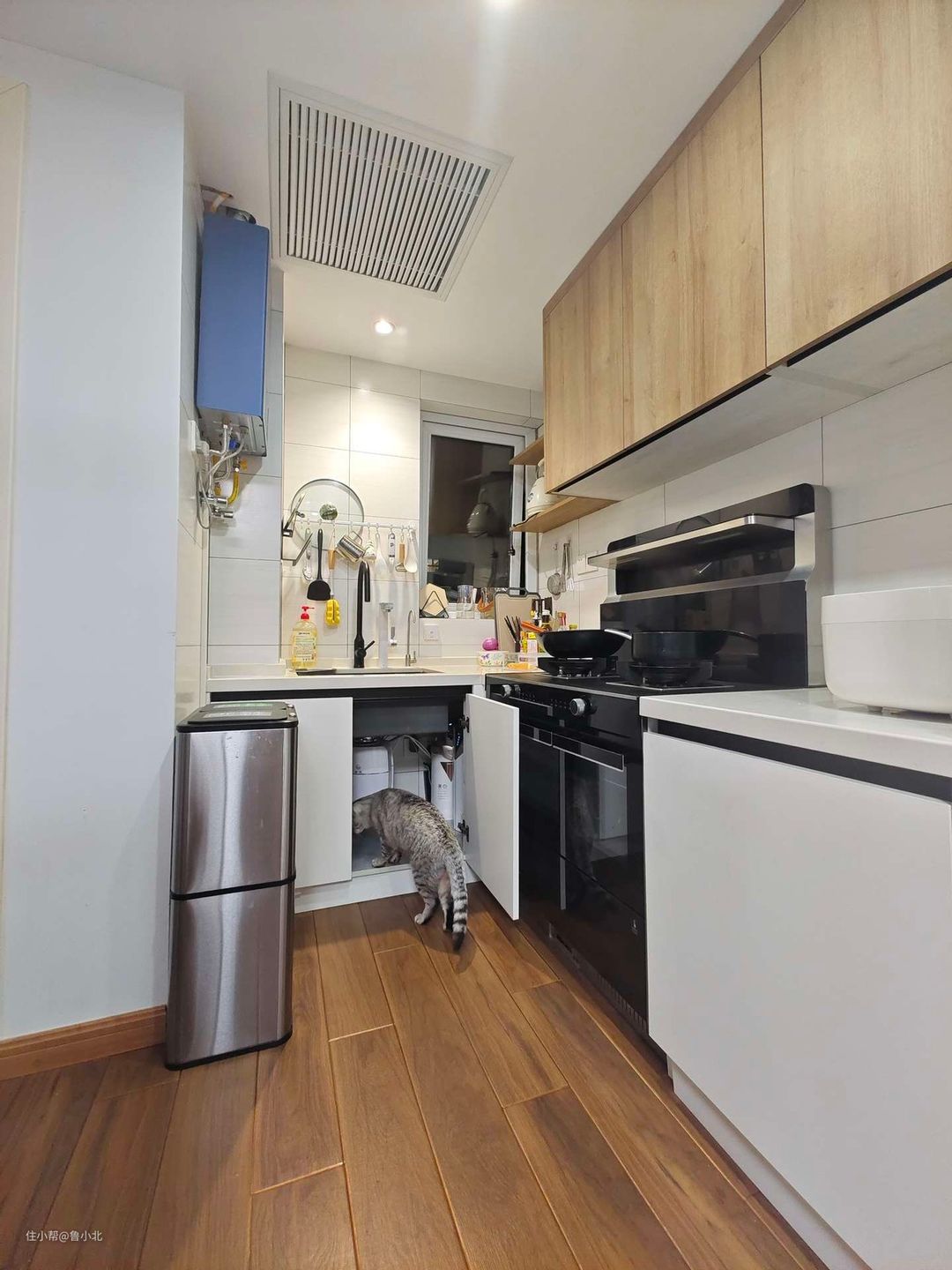 尤其是大花纹图案,或者腰线装饰带,看起来总是土土的,很像父母那一辈会选的风格,纯色柜门才是真的香!