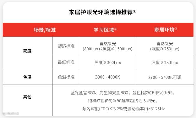 中小学生除学校以外,家庭是仅次于学校的第二学习场所,除作业任务,家居要达到学校一样的护眼光环境,推荐如下标准。