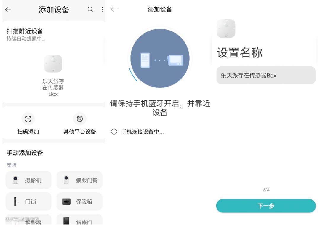 我没有下载其他的APP,还是使用手机里的米家。首先打开手机的蓝牙,处在识别状态。点击米家右上角的加号,不用扫码添加,自动就能识别出来。如果有多个传感器,设置名称时最好根据安装位置把默认的名字改一下