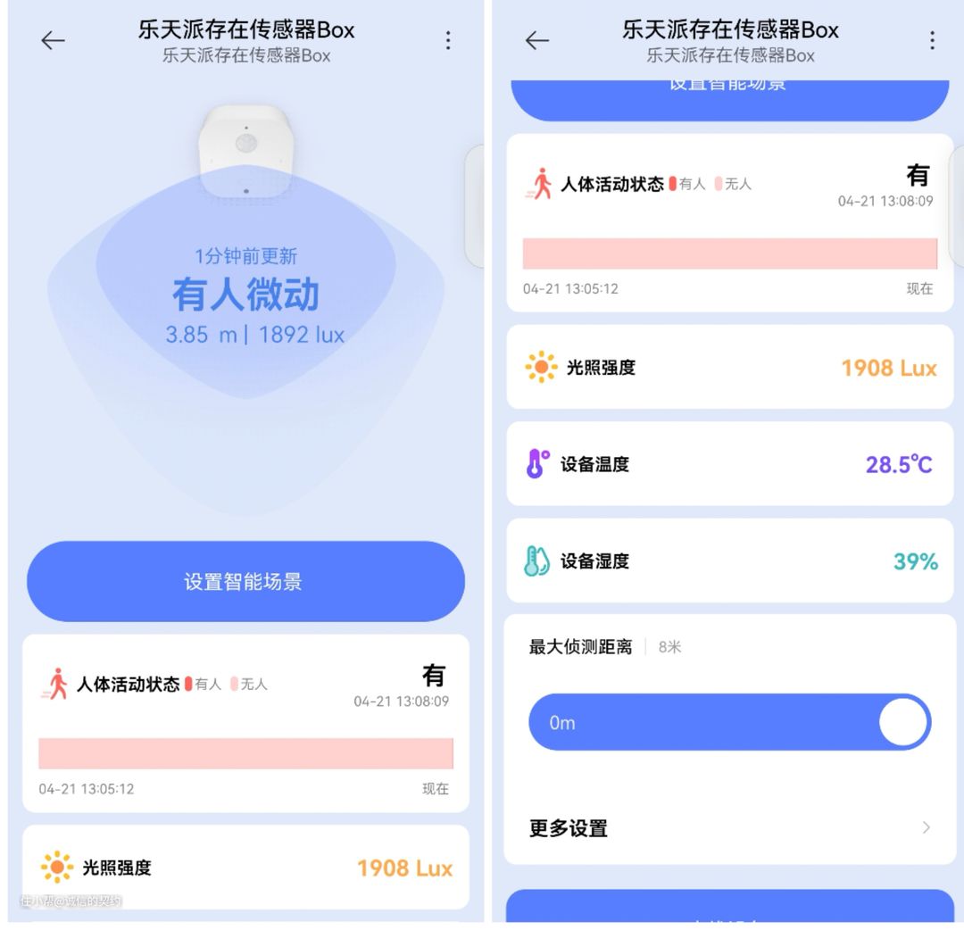 朋友们信不信,其实这个社会是懒人推动科技的发展。自从家里有了小爱同学,我按大厅灯开关都嫌费劲。最近又有了更过分的想法,我觉得喊小爱也挺累的,能不能让大厅的灯,人来即开人走即关了呢?于是做了一下功课,发现还真行。因为我家用的是小米系,为了系统化好操作,还能智能联动,就选择了接入米家的乐天派人体存在传感器Box。