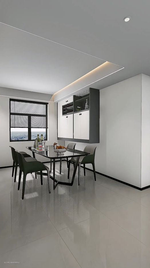 餐厅角落放冰箱,外侧做高柜,增加储物更整洁。