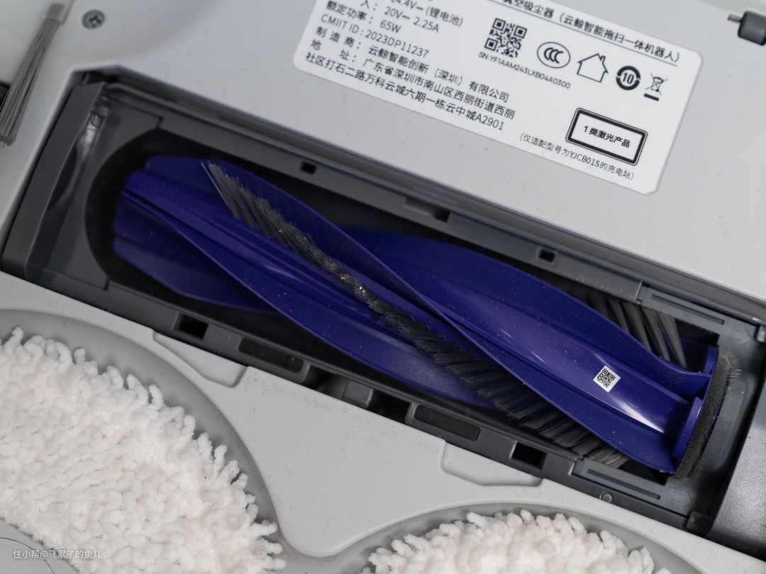 扫完后,把这家伙翻过来,棉线确实没有缠绕在滚刷上,云鲸J4 零缠绕真的稳!