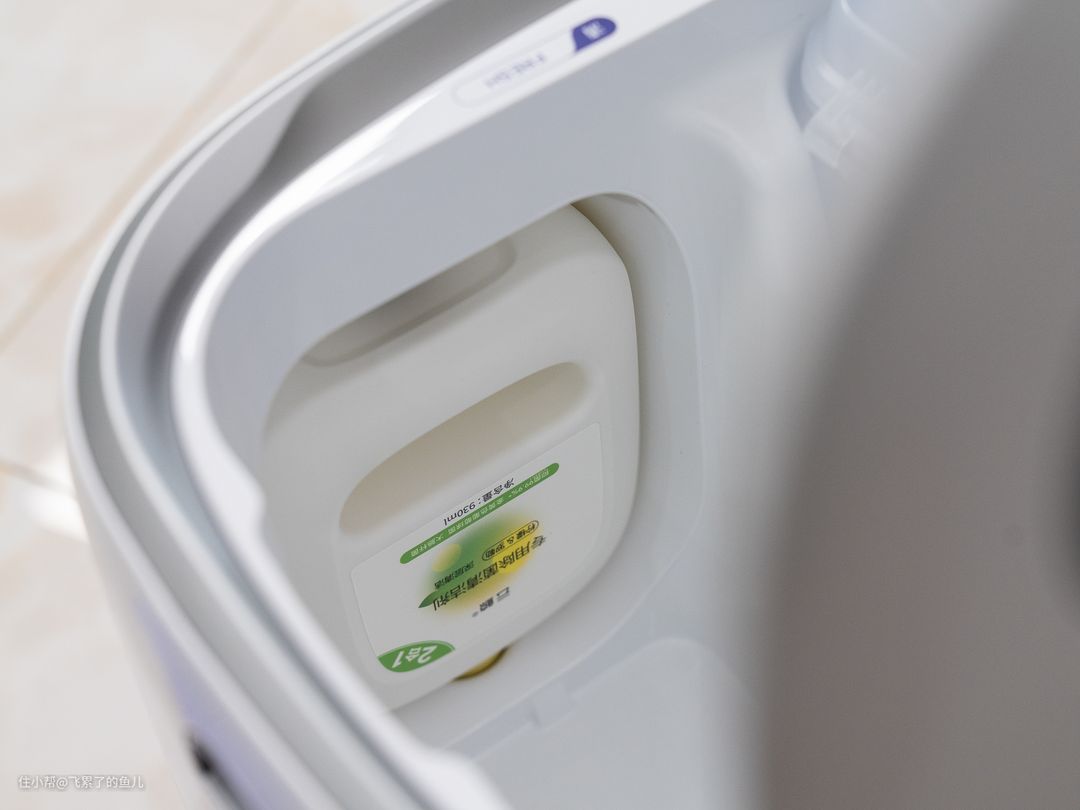 云鲸J4既标配了自动添加清洁剂的功能,保证地面清洁效果,又在清水箱设置了银离子抗菌模块,实现清水箱——管路——拖布——污水箱的全链路抗菌,实现地面的深度洁净。