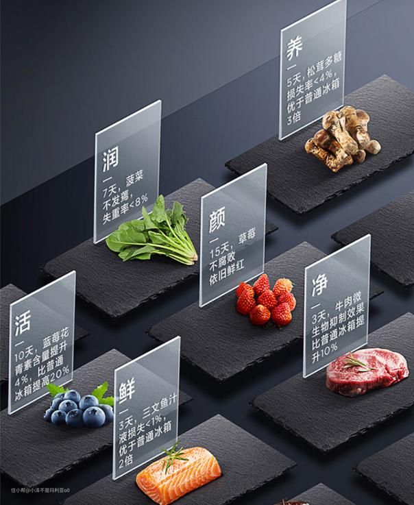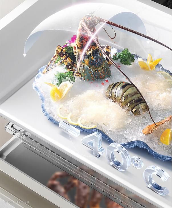 分子保鲜科技配合-40℃晶态膜锁鲜技术实现了全食材保鲜的同时,还能兼顾海鲜急冻保鲜的需求。
