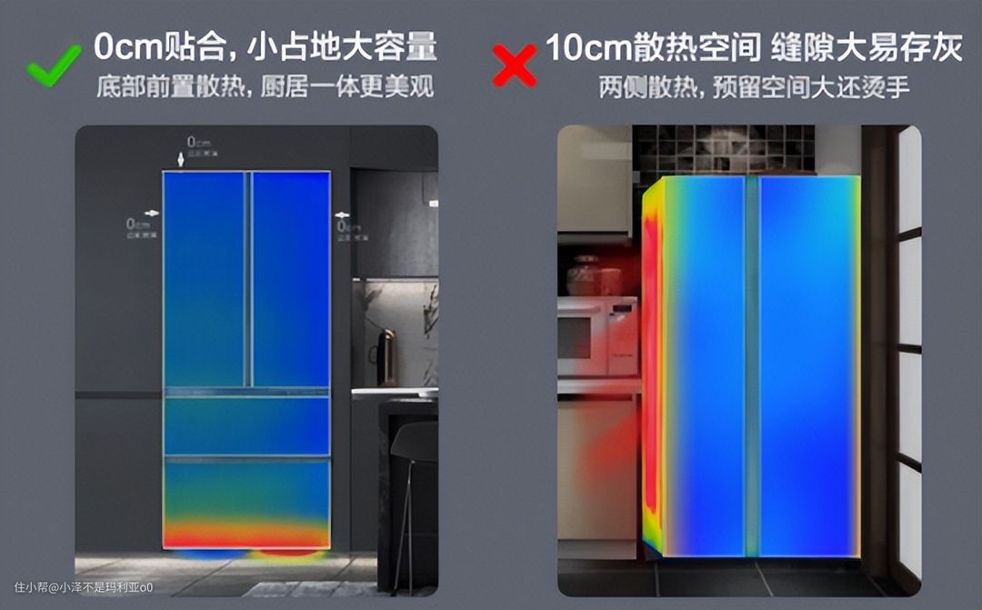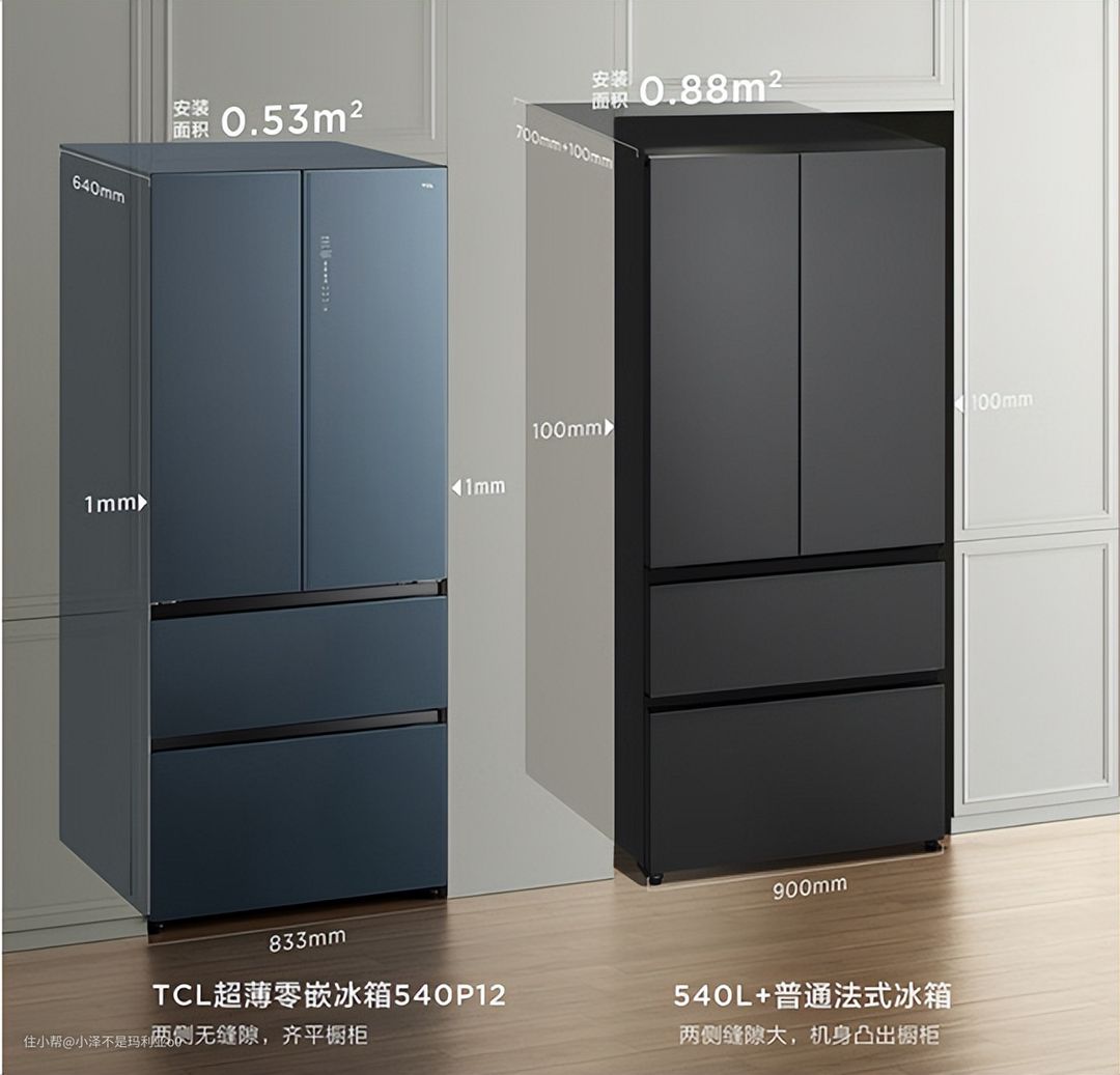 左为薄嵌冰箱,右为普通冰箱
