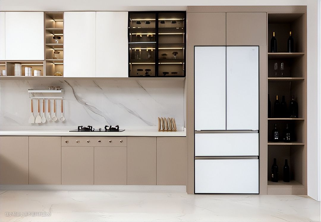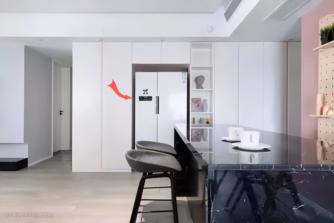 友情提示: 小伙伴们如果想让冰箱实现完美的嵌入,一定要先选好冰箱再留橱柜位置,这样才能做到完美嵌入。有好多人会顾虑后期冰箱更新的问题,其实在我看来,冰箱作为一个耐用家电,使用时间基本和橱柜寿命同期,所以完全没有必要太在意,如果真的出现冰箱更新,那趋势也是更薄更大容量才对。