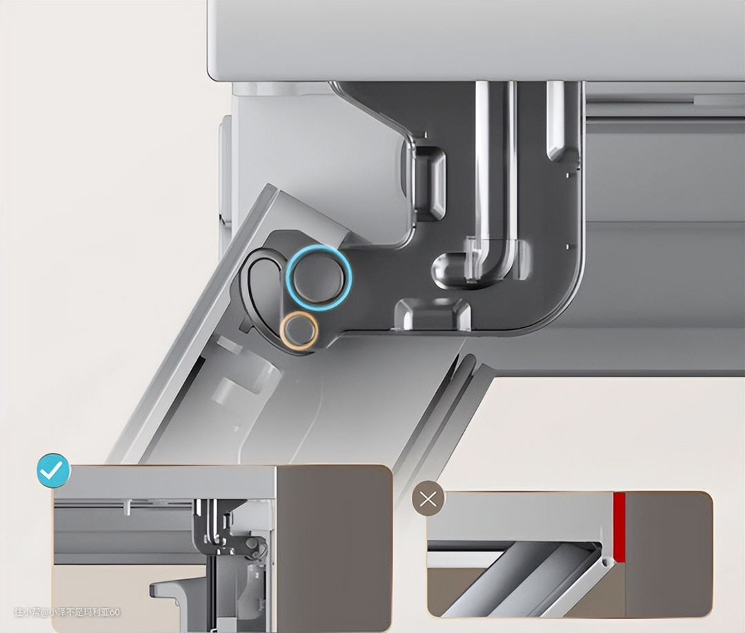 而对于薄嵌冰箱来说,一般都会把冷凝器设计到底部,通过底部散热,就可以让冰箱能够实现小缝隙甚至0缝隙的安装了。通过这个设计,既节省了空间,又对散热没有影响,同时也减少了缝隙大,容易藏污纳垢的问题。