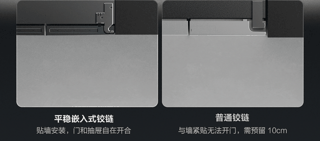 对于普通冰箱,两侧预留10cm空间一方面是为了散热,另一方面也是为了能够让冰箱门打开,普通冰箱使用的传统铰链,开门之后门体会有一部分凸在外面,侵占外部空间,因此才需要在冰箱两侧留出一定缝隙。