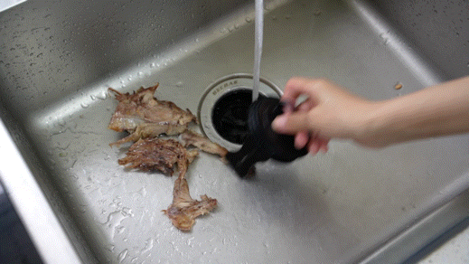 ▼接下来是吃完的鸭架骨,对于这种比较坚硬的厨余垃圾,E60 Pro的遇阻智能反转技术可以很好的解决研磨盘卡顿问题,当检测到坚硬的骨头卡住研磨盘后,电机会自动逆时针反向旋转,自行脱困,避免手动干预。