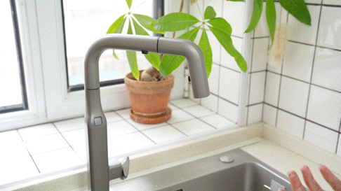 ▼当然对于垃圾处理器用户,F05Pro最强的功能还是能够跟垃圾处理器进行联动,双手在水龙头两侧挥手,会先出水1-2秒,之后垃圾处理器就会自行启动,处理完垃圾后,垃圾处理器自动停止,水龙头则会继续冲洗2-3秒后自动关停,跟我平时手动操作垃圾处理器的流程完全相同!