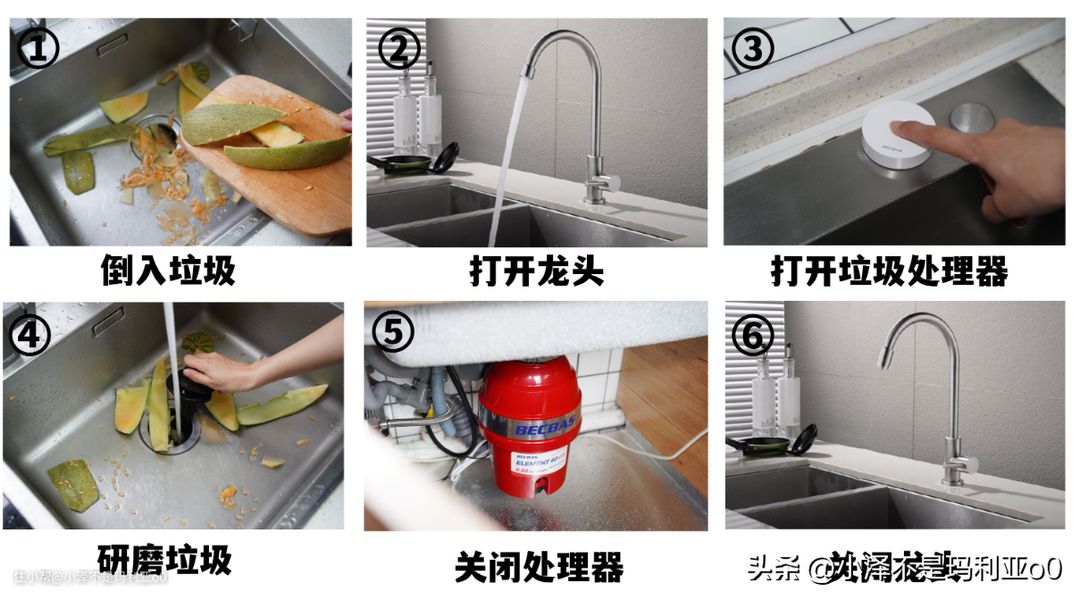 ▼垃圾处理器虽然用起来倍儿方便,但也不是哪哪都好,首先一套繁琐的操作流程就足够劝退一大帮人,每次使用前要先开水龙头,再打开垃圾处理器,处理垃圾时需要人全程在旁边守着,之后要先关垃圾处理器,让水冲洗个3、4秒钟再关水,刚开始使用我也是熟悉了半个月才慢慢适应。