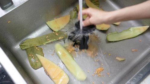 ▼吃完的哈密瓜皮直接扔进垃圾处理器里,感应开启后,出水,研磨一气呵成,之后转身离开厨房,E60 Pro能够每秒钟50次感应负载,一旦检测到垃圾研磨完成机器开始空转就会自动停止,全程不需要人守在旁边,特别省事儿。