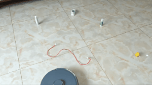 鞋子这种算是家里比较常规的障碍物了,绕扫过程中,云鲸逍遥001严格执行了20mm的远贴边策略。此外,还有一个细节值得一提,云鲸逍遥001绕扫鞋子的时候,会把靠近鞋子一一侧的边刷收起,绕扫完成后再放出边刷继续清扫其他位置,做到最大限度避免与障碍物的碰触。
