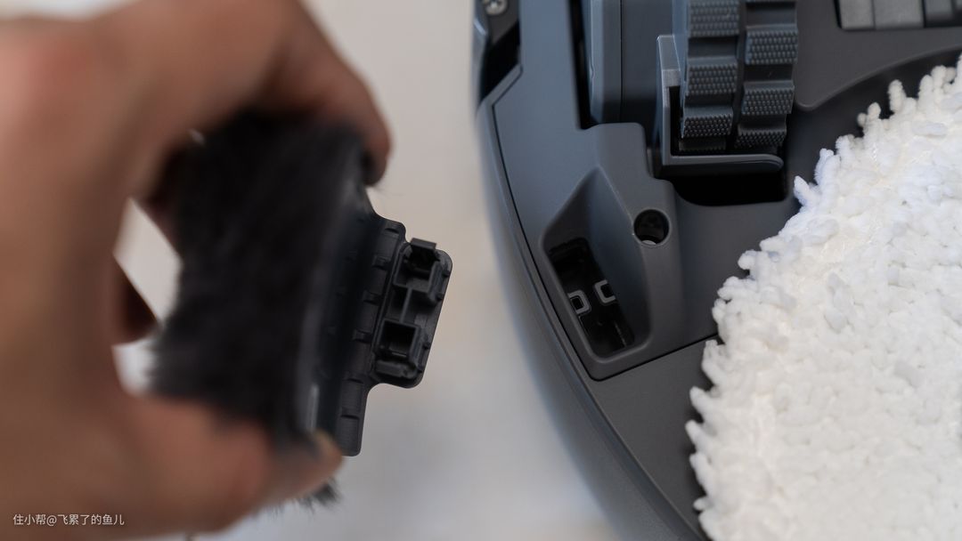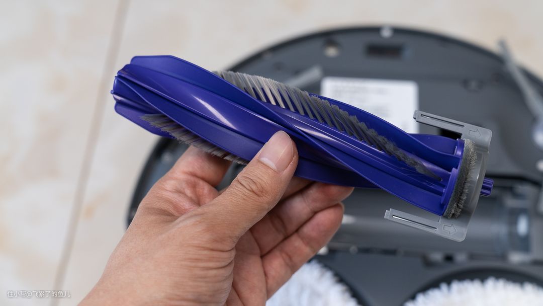 翻过来检查,滚刷确实没有任何缠绕,要知道,长且没有韧性的线绳可比头发易缠绕太多了。所以,云鲸逍遥001的防缠绕能力是完全可以信任的,这点在云鲸J4上已经得到验证。