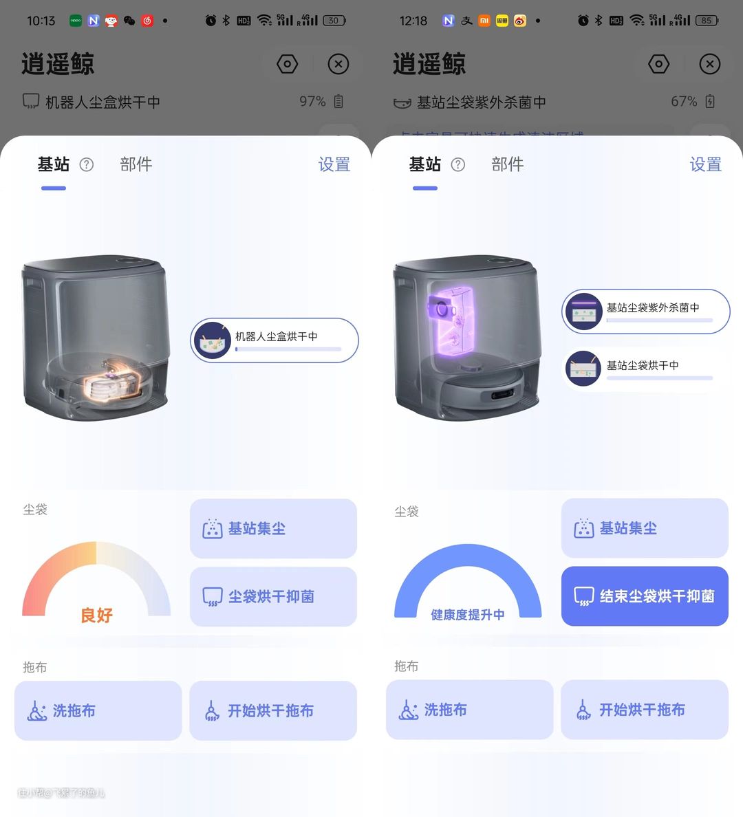 像这次,它判断一遍不能彻底清洁,所以没拖完就回洗拖布去了,回来继续拖,两遍基本就拖干净了。