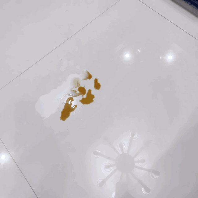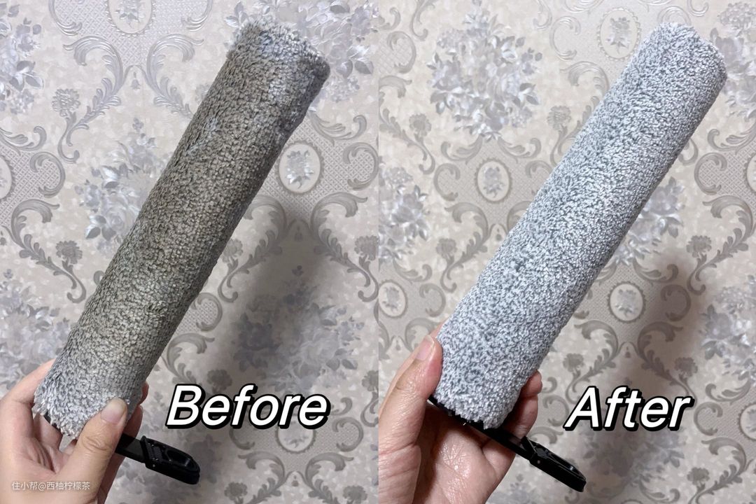 在测试湿垃圾时,我用了牛奶和陈醋模拟不小心洒在地上的汤汁,可以看到,一个来回就能清洁干净,而且有「恒压活水系统」的加持,在使用时会对滚刷进行实时自清洁,完全不用担心二次污染问题。