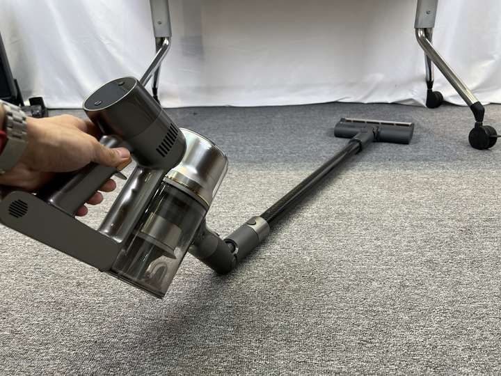 这台追觅V16S外观上与之前的V16轮廓设计上没什么大的改变,但灰金色的配色,加上碳纤维的连接杆,减轻了重量的同时,也显得高级感十足。(变化主要在绿色荧光探照)