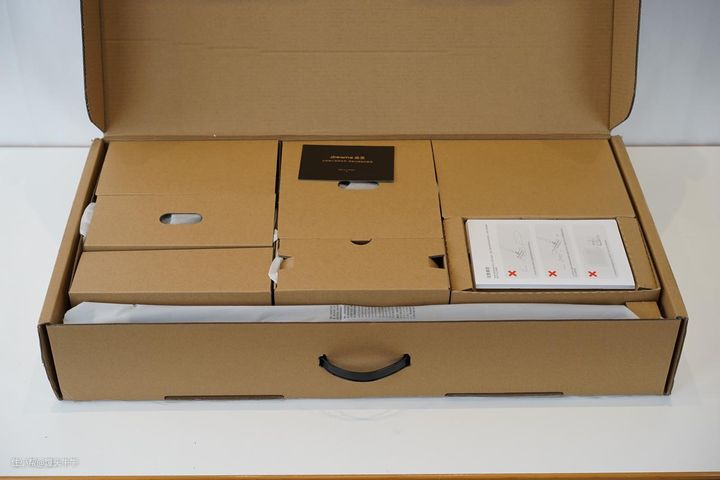 打开包装盒,里面整个装箱严实又紧凑,说明书、定位贴、注意事项等纸质说明都很齐全。