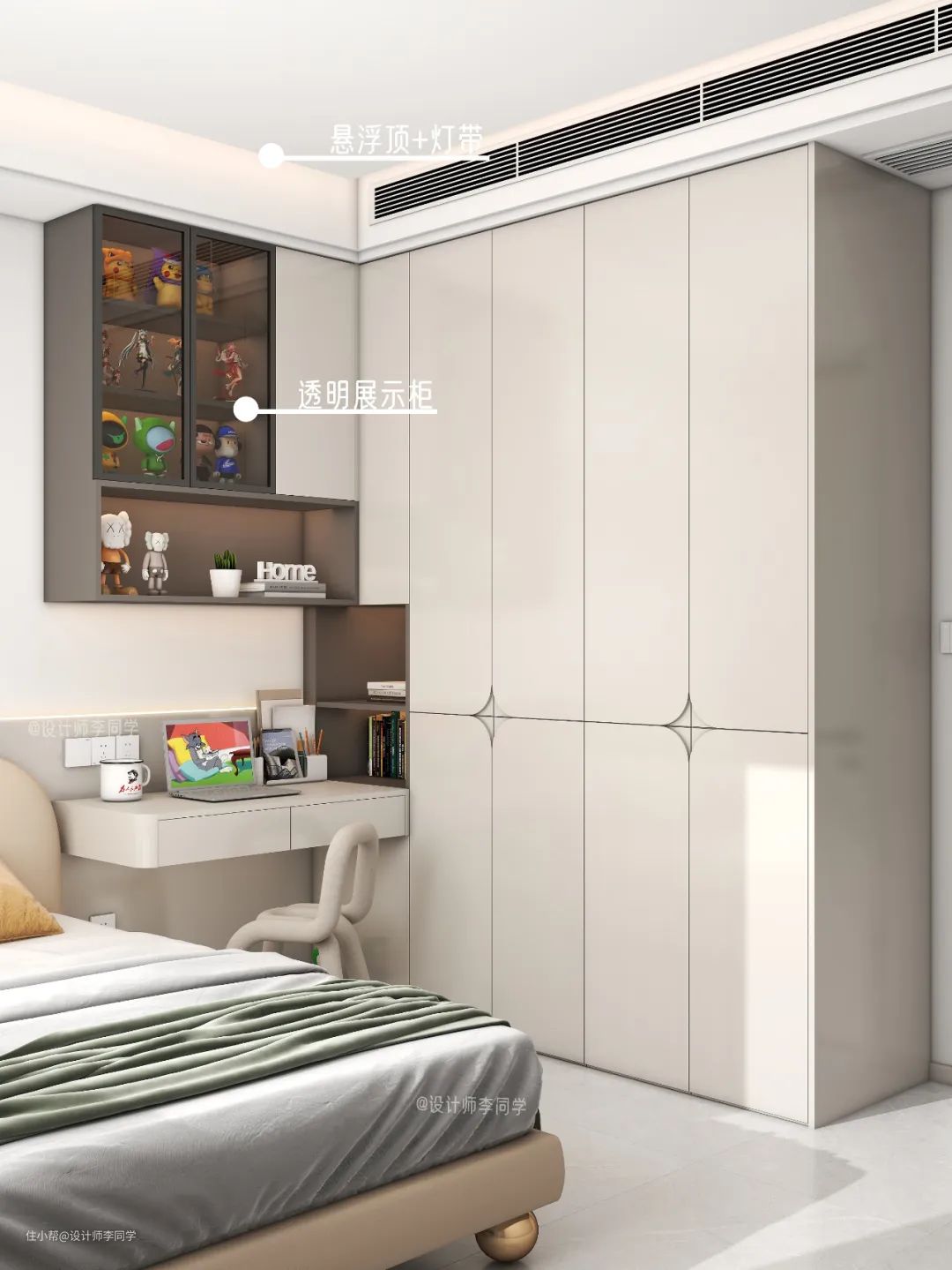 8平儿童房衣柜书桌一体设计,学习收纳都满足!