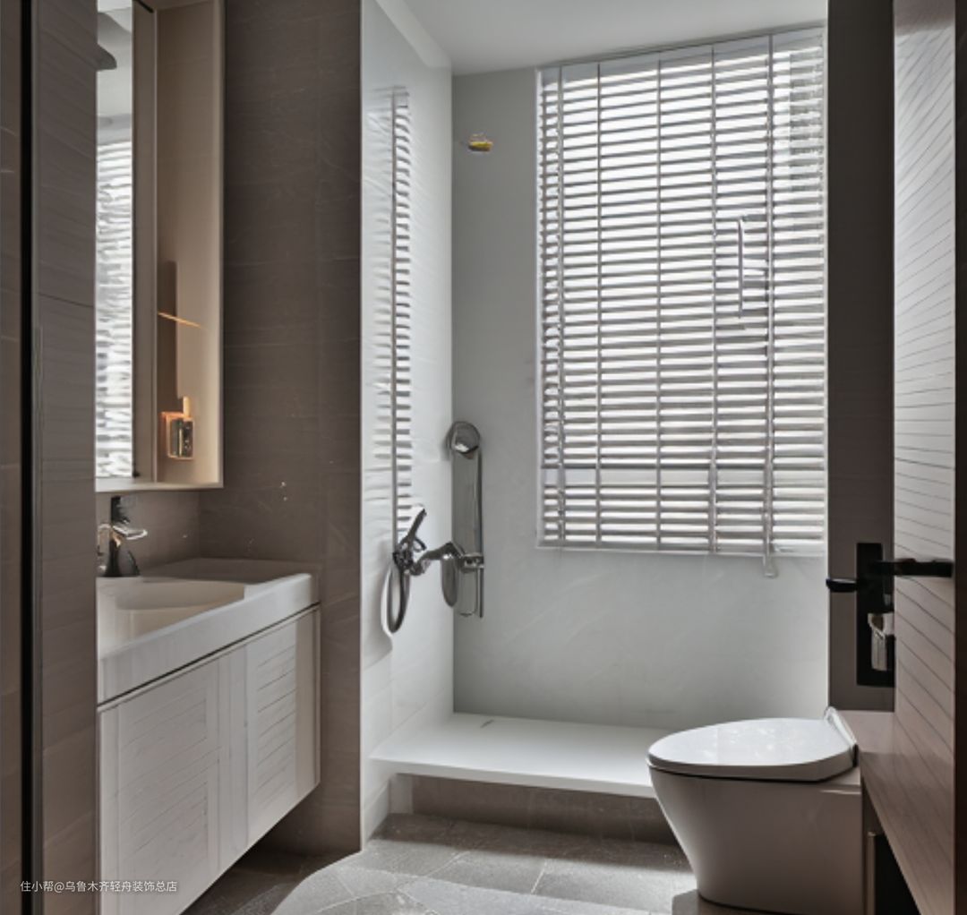 对于小户型的卫生间来说,干湿分离同样适用。设计师通常会利用精巧的布局和巧妙的隔断来最大化利用有限的空间。例如,通过在淋浴区上方设置置物架,或是选择壁挂式马桶和洗手盆来节省空间。这些设计不仅实现了功能性的分离,还让小空间显得不那么拥挤。