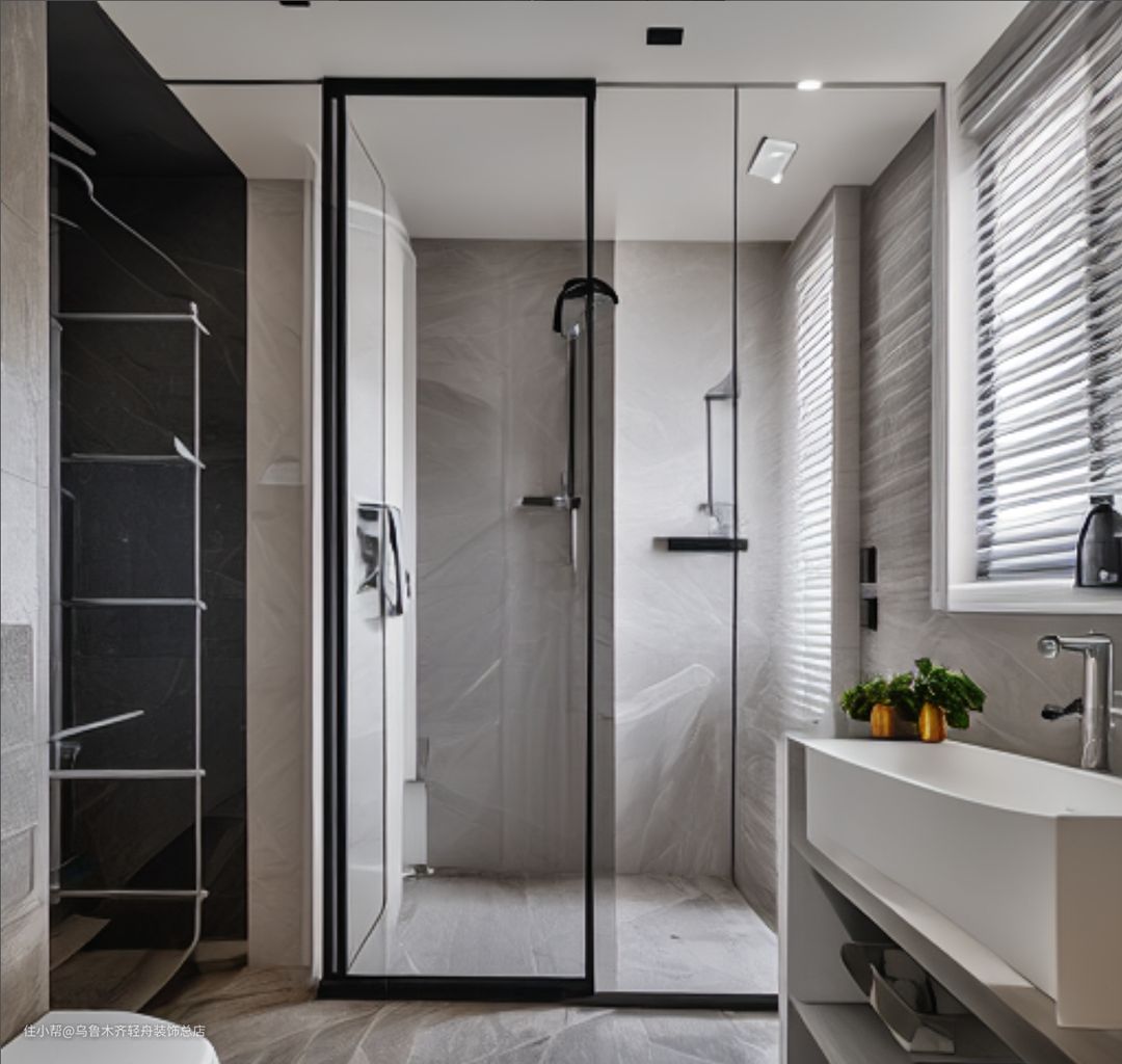从收集的装修效果图来看,干湿分离的设计方式多种多样。一些设计中,淋浴区被置于一个完全独立的玻璃房内,这样的设计既能达到干湿分离的效果,又增添了一丝现代感。而在另外一些设计中,淋浴区则采用半开放式的设计,仅用一半的玻璃墙作为隔断,既保留了空间的开放性,又不失干湿分离的实际功能。