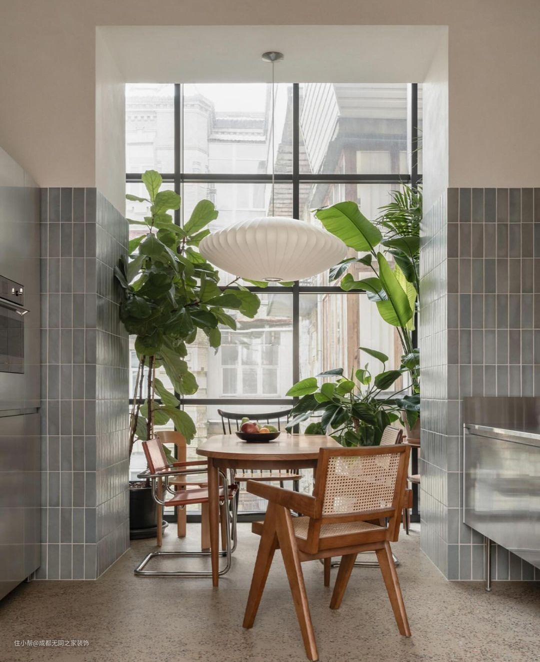 🍽️ 厨房区域采用了现代化的设计,配置了不锈钢的厨房设备和大理石的墙贴,显得精致且功能齐全。