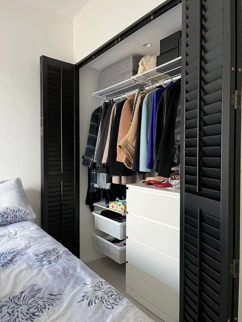 斗柜和衣柜一体:适合搭配砌墙衣柜或者可灵活组装的金属衣柜,增加斗柜方便存放小件贴身衣物。